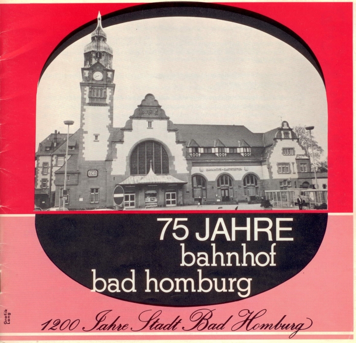1982: Dreifach-Geburtstag: 1200 Jahre Stadt Bad Homburg 75 Jahre Bahnhof Bad Homburg 25 Jahre Bahnhofsgaststätte Bild: 75 Jahre bahnhof bad homburg, Hg.: Deutsche Bundesbahn, Bundesbahndirektion Frankfurt (Main), Theo Wirges - Pressestelle