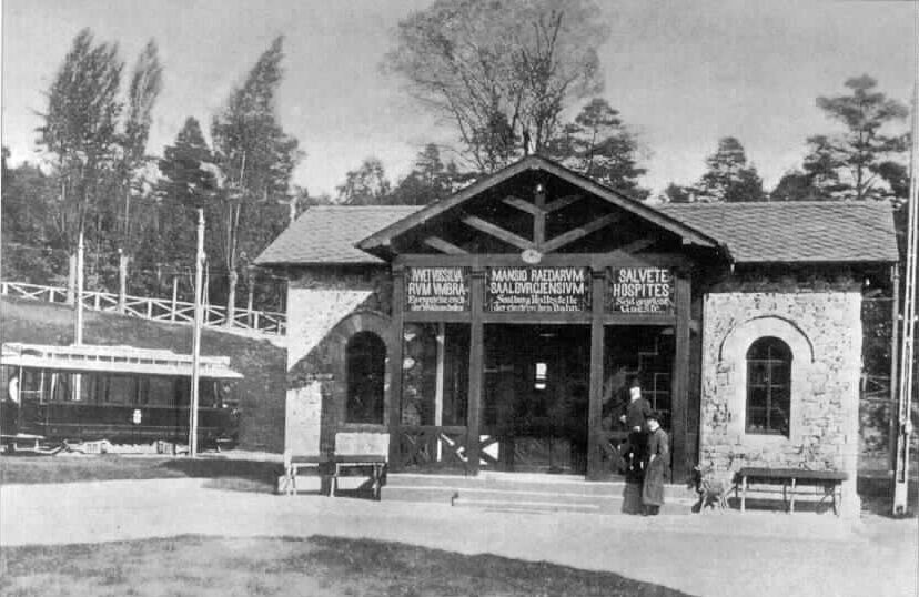 Das Bild links oben zeigt das Stationsgebäude unterhalb der Saalburg