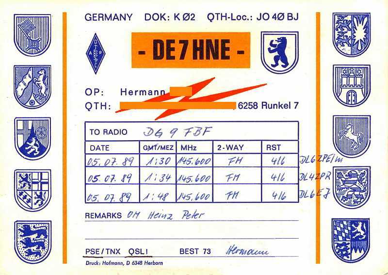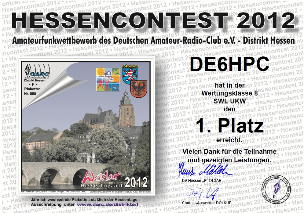 Zusätzliches SWL-Rufzeichen: DE6HPC (ab 2011).