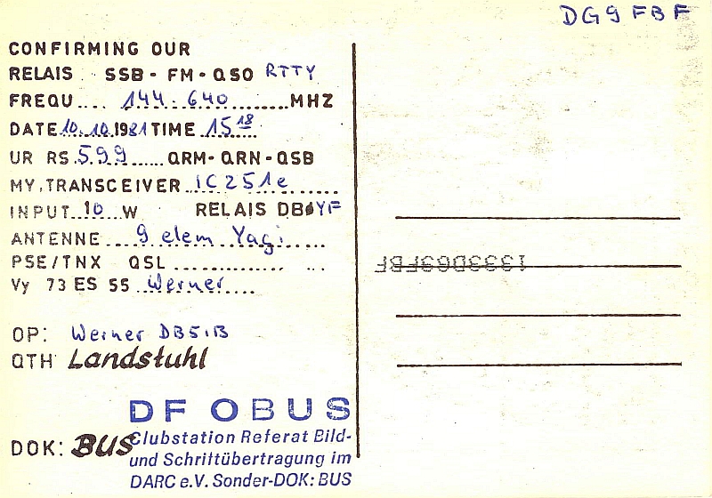 Früheres Rufzeichen: DG9FBF (1981-1991).