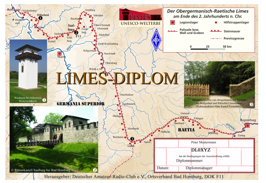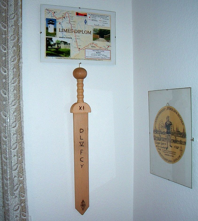 Nachdem alle QSL-Karten eingetroffen sind, ist jetzt auch das LIMES-Diplom samt Gladius an der Wand! |