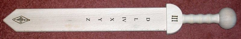 Nachdem der LIMES zum Weltkulturerbe der UNESCO erklärt wurde und das einzige vollkommen rekonstruierte Römerkastell, die Saalburg, in den Grenzen Bad Homburgs liegt, hat sich der Ortsverband F11 Bad Homburg entschlossen, das LIMES-Diplom herauszugeben. Als 2. Stufe dieses Diploms gibt es einen Gladius, hölzerne Nachbildung eines römischen Kurzschwertes. |