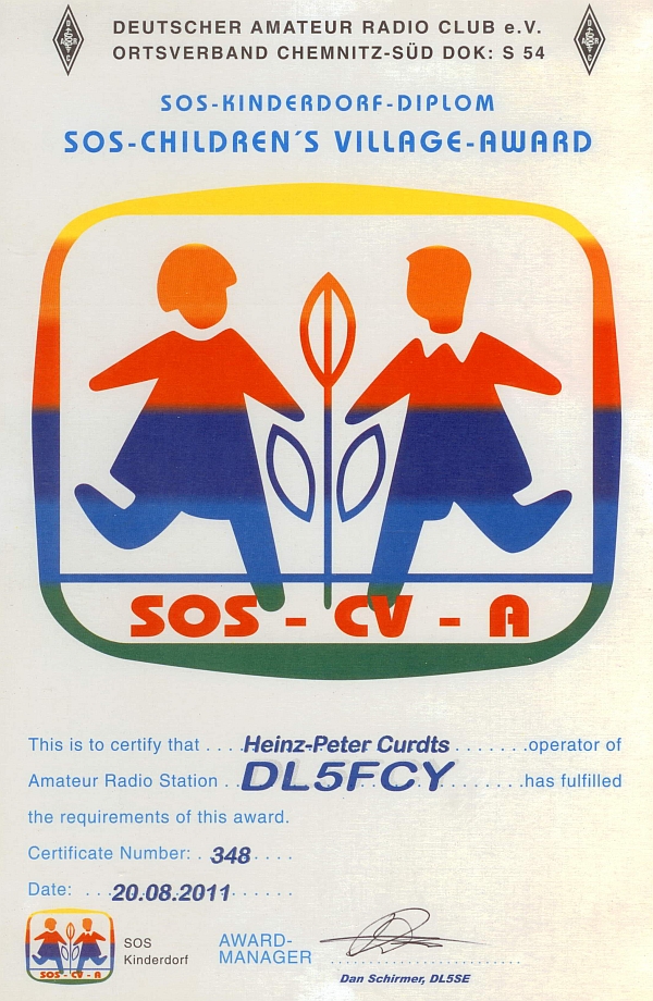 Ein weiteres Diplom, dessen Erlös guten Zwecken dient - hier für die SOS-Kinderdörfer |